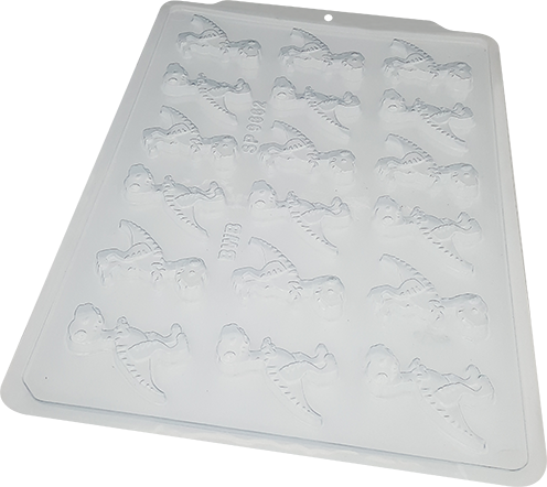 1 részes csoki öntőforma, dinoszaurusz, 24x36 cm. Készítsen egyszerű, mégis aranyos csokoládét könnyedén ezekkel a csokoládé öntő formákkal. Használja sütemény díszeként vagy csak mulatságos édességként partikon. A formából könnyen eltávolítható a kész csokoládé termék, de használható cukormasszával vagy modellcsokoládéval is. Használat után mossa el meleg szappanos vízzel és törölje át ecetes vagy citromos papírtörlővel, hogy ne maradjon vízkő foltos. Újra és újra felhasználható!