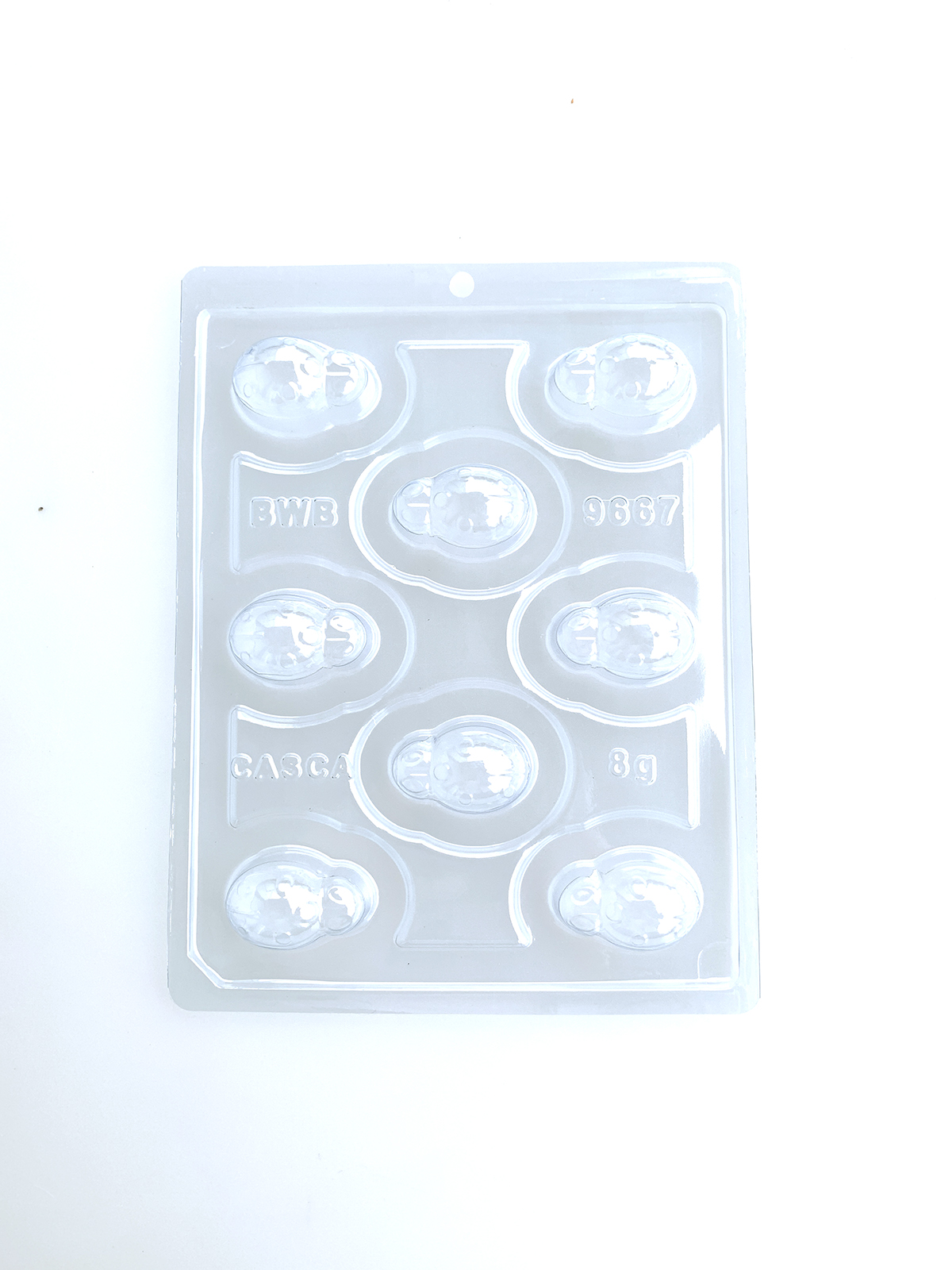 3 részes csoki öntőforma, katicabogár, 21x17 cm, a forma 8 tégelyt tartalmaz, egy mérete: 4,5x3 cm. A forma 3 részből áll, alja, teteje és a középső szilikon elválasztó. Kezdők is könnyen használhatják, mert nem kell színig önteni csokoládéval, csak az alján lévő jelölésig, majd a szilikon elválasztót rá kell helyezni a csokira, a tetejét pedig finoman lenyomva a csoki saját magát oszlatja szét a nyomás hatására a forma belsejében.