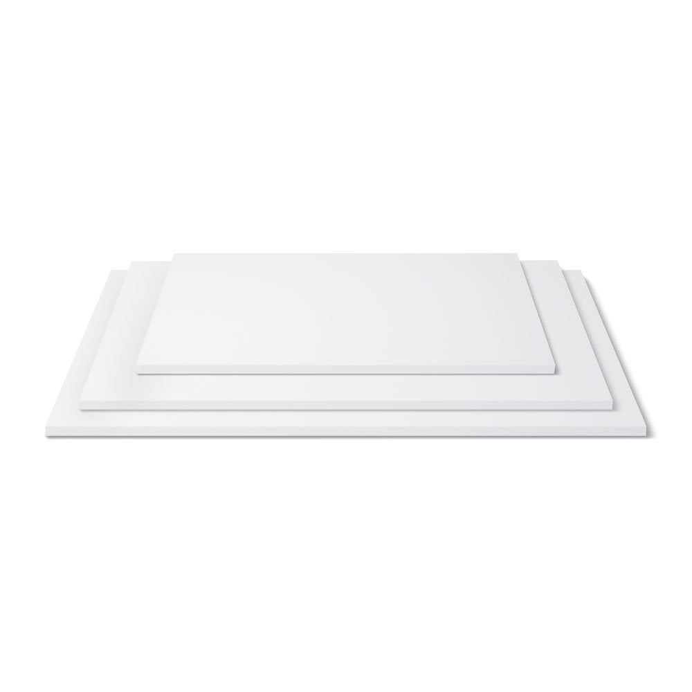 Tortadob, téglalap, 405X455 mm, 12 mm vastag, fehér fóliás. Élelmiszerbarát fóliával bevont részére közvetlenül rátehetjük a süteményt, de színes vagy mintás fondant-al bevonva, széles szalaggal díszítve az élét igazán feldobja a tortát.