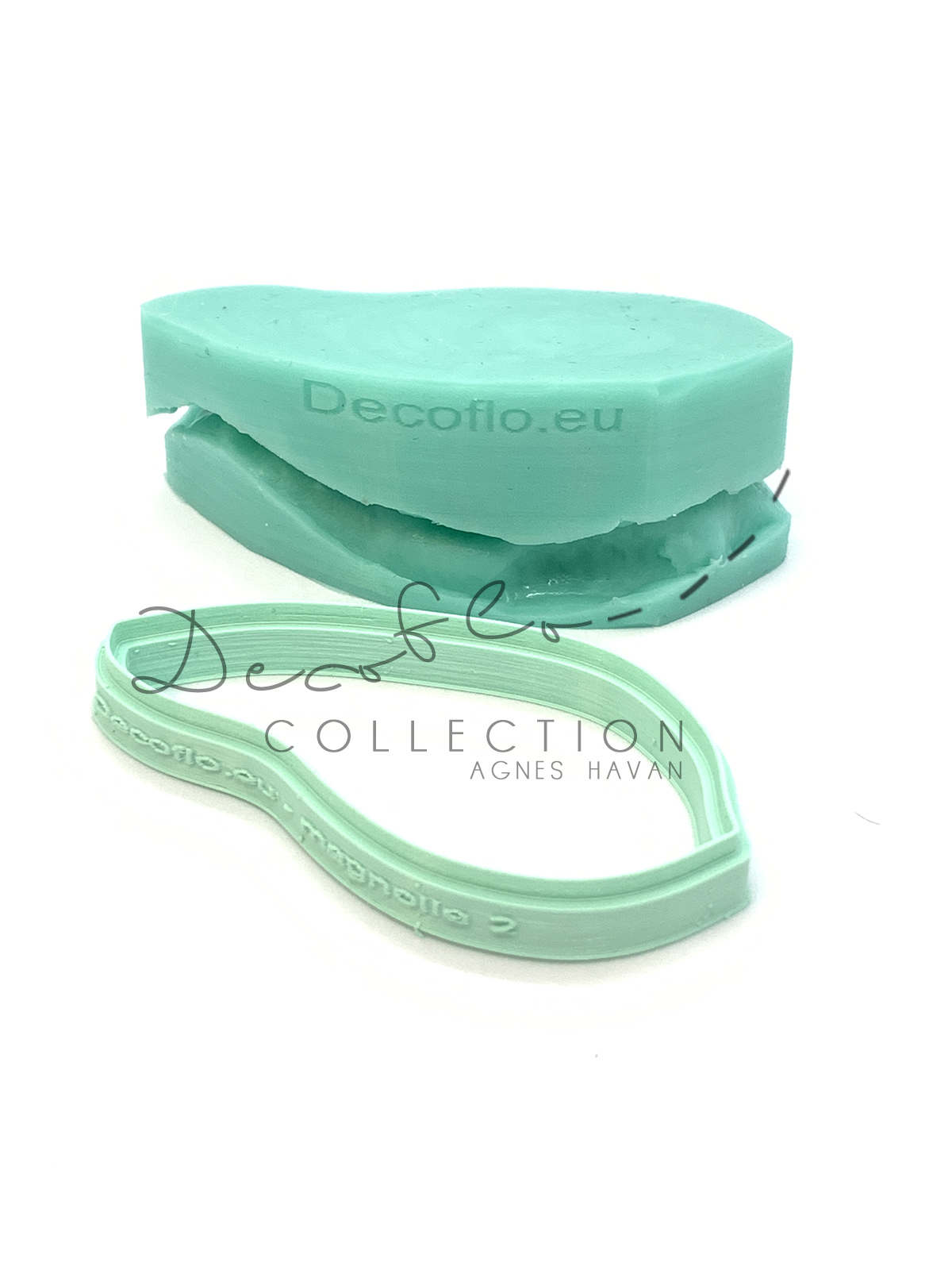 Decoflo Magnolia double-sided outer petal veiner and cutter set for making decorative flowers. The veiner is botanically correct, identical to the shape of a live petal. Before use, it is recommended to sprinkle the veiner with cornstarch so paste does not stick to it. Rinse with lukewarm water after use. Package contents: 1 veiner and 1 plastic cutter. Size: 7x4 cm. Keeping clean: the plastic cutter can be washed with water up to 60 ° C, cannot be cleaned with a dishwasher, the silicone veiner can be used up to 240 ° C. Not suitable for baking food.