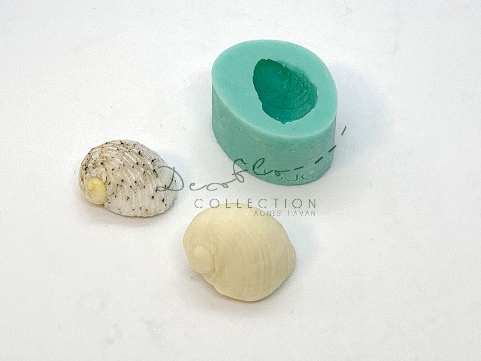 Decoflo tengeri csiga szilikon forma, 2,4 cm. A formát először szórjuk be porcukorral vagy kukorica keményítővel, majd nyomjuk bele a fondant, marcipánt vagy modellcsokit majd éles késsel távolítsuk el a felesleget a tetejéről, végül a forma széleit széthúzva nyomjuk ki a kész díszt. Ha szükséges, kiszedés előtt fagyasszuk le masszával együtt, majd a fagyasztóból kivéve egyből távolítsuk el a szilikonból. Hagyjuk egy kicsit száradni, majd utána fessük vagy porozzuk.