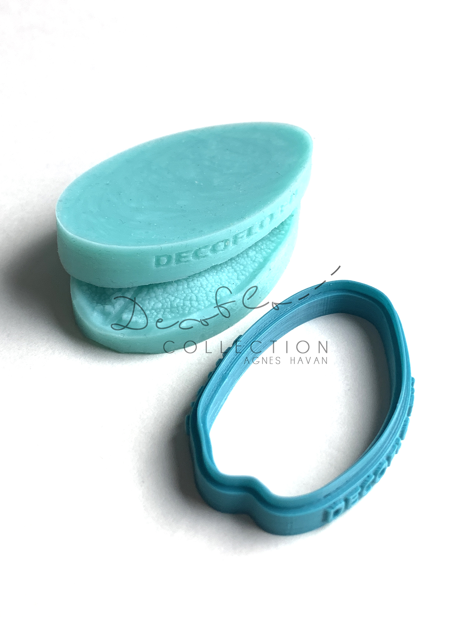 Decoflo Eucalyptus leaf double-sided veiner and cutter set for making decorative flowers. The veiner is botanically correct, identical to the shape of a live leaf. Before use, it is recommended to sprinkle the veiner with cornstarch so paste does not stick to it. Rinse with lukewarm water after use. Package contents: 1 veiner and 1 cutters.