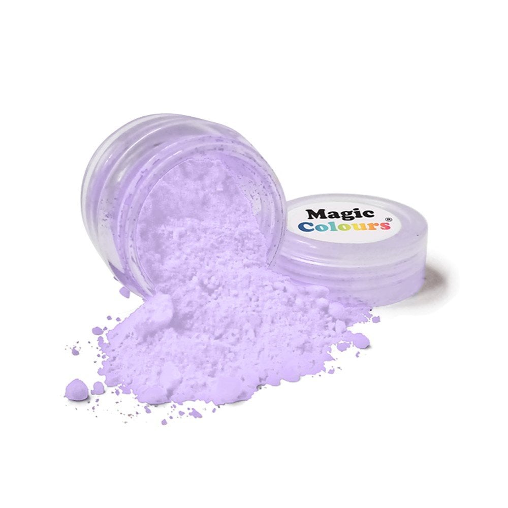 Ételfesték, por állagú, Magic Colours, Levendula lila, 7ml,virág szirmok, levelek életre keltéséhez, lapos ecsettel könnyen felvihető, vagy alkohollal hígítva erősebb színt eredményez. Használható fondant, cukormassza, marcipán, modell csokoládé, glazúr, cukormáz festésére. A szín megkötése érdekében érdemes a cukor virágokat átgőzölni, vagy cukrász fénnyel befújni.