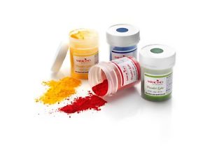 Vibráló színű por ételfesték, lapos ecsettel könnyen felvihető, vagy alkohollal hígítva erősebb színt eredményez. Használható fondant, cukormassza, marcipán, modell csokoládé, glazúr, cukormáz festésére. A szín megkötése érdekében érdemes az készterméket átgőzölni, vagy ha szükséges, gyors fénnyel befújni. Gluténmentes.