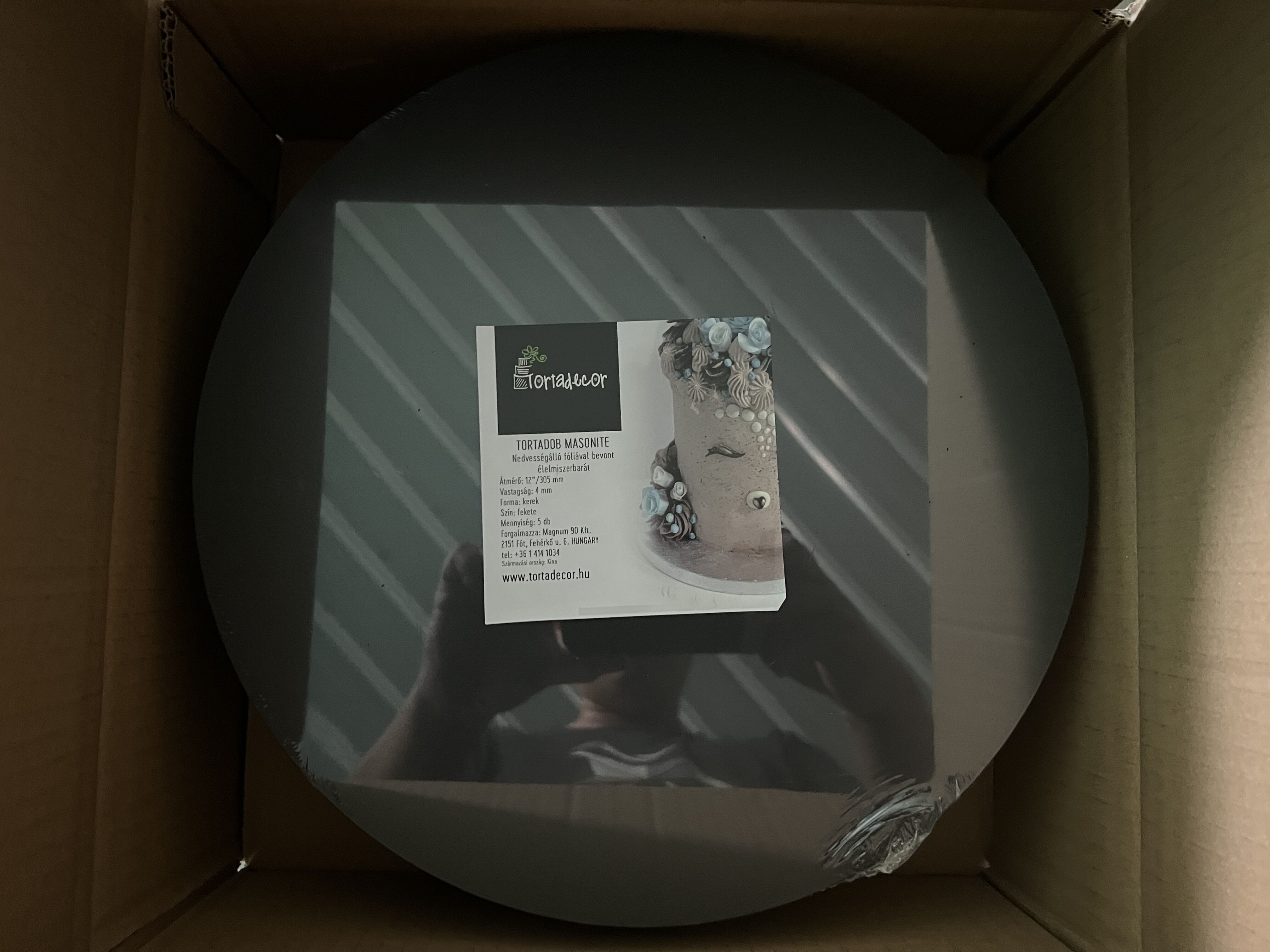 KARTONOS Tortadob, kerek, 254 mm, 4 mm, fekete, 50 db/cs @275Ft.