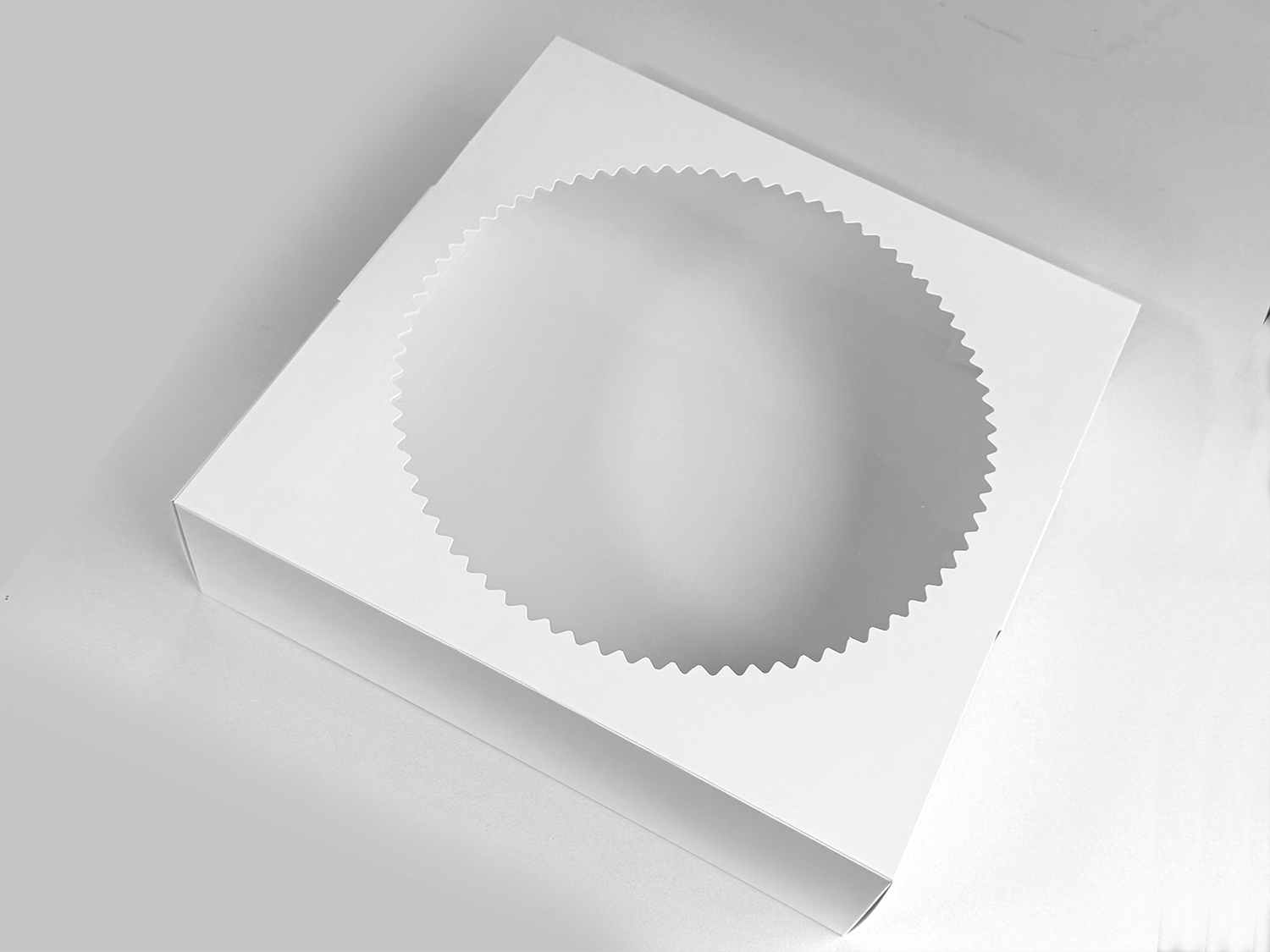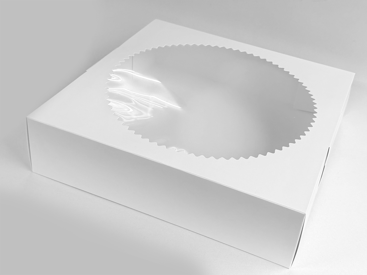 Pite/Torta/Sütis doboz, négyzet, átlátszó ablakos tető, 30x30x8 cm, fehér, 50 db/cs, @200 Ft/db, klasszikus kivitel, könnyű szállítás, lapraszerelten szállítjuk.