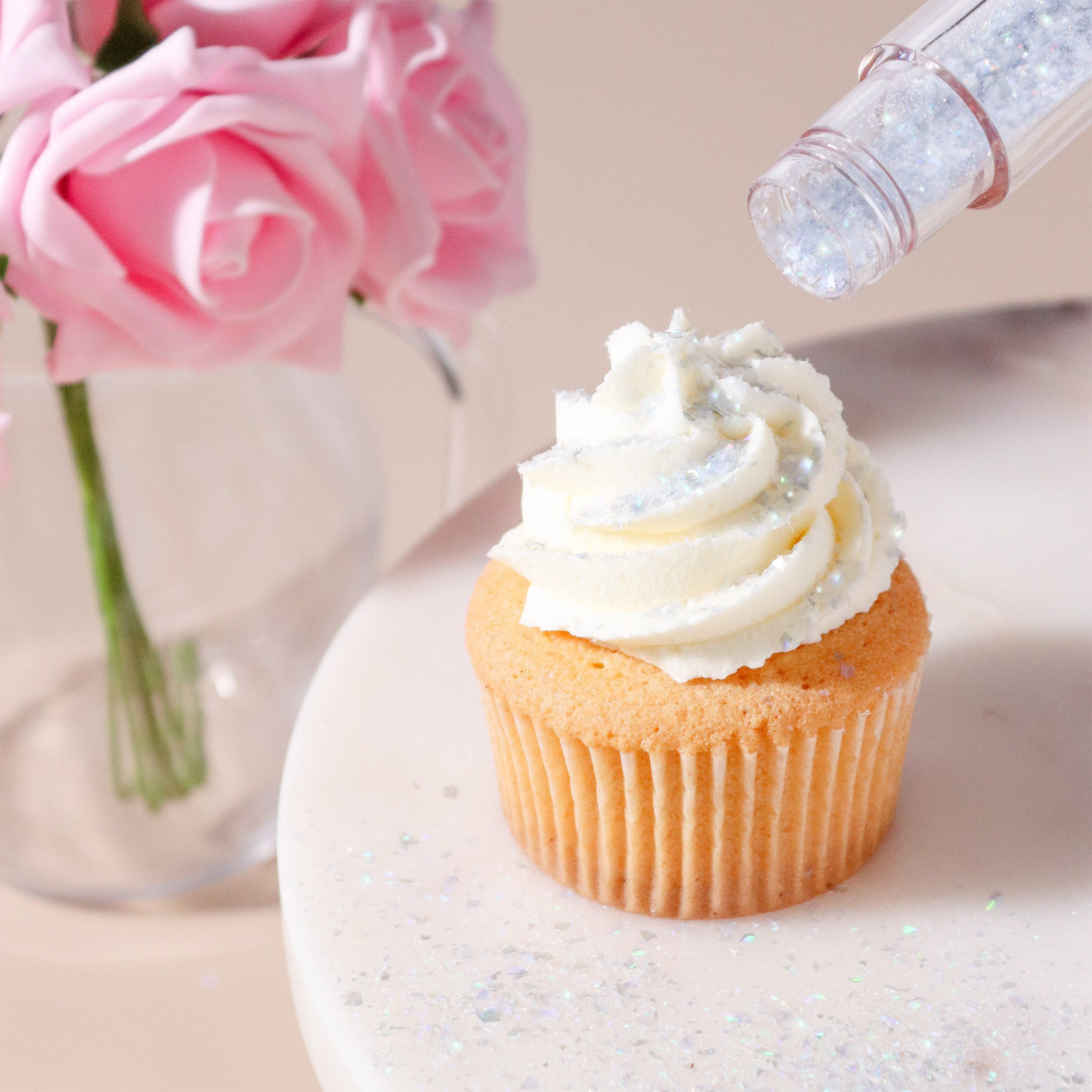 Használd száraz felületeken, hogy ne oldódjon fel. Tökéletesen káprázatos hatást keltenek, a csillámpelyhek biztosítják, hogy desszerteid ragyogjanak!