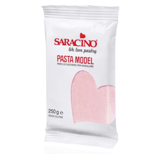 Saracino modellező cukormassza figurákhoz, Púder halvány Rózsaszín, 250g, igazi különlegesség. Kitűnő modellező tulajdonságokkal bíró cukormassza figurák készítéséhez, mely külső felülete gyorsan keményedik, de belül nem szárad, ami azt jelenti, hogy még 1 napi száradás után is az anyag újra felhasználható minden gond nélkül. Tulajdonságai fokozása érdekében érdemes modellcsokoládéval keverni, így a két anyag egyesíti pozitív tulajdonságait. A massza a csomagolásban keménynek tűnik, de egy kis gyúrás után lágy és jól nyúló lesz. Összetevők: cukor, burgonya keményítő, glükóz szirup, kakaó vaj, kukorica keményítő, térfogat növelő: karboximetil cellulóz, színezék. Hidrogénezett zsírt nem tartalmaz, glutén mentes.