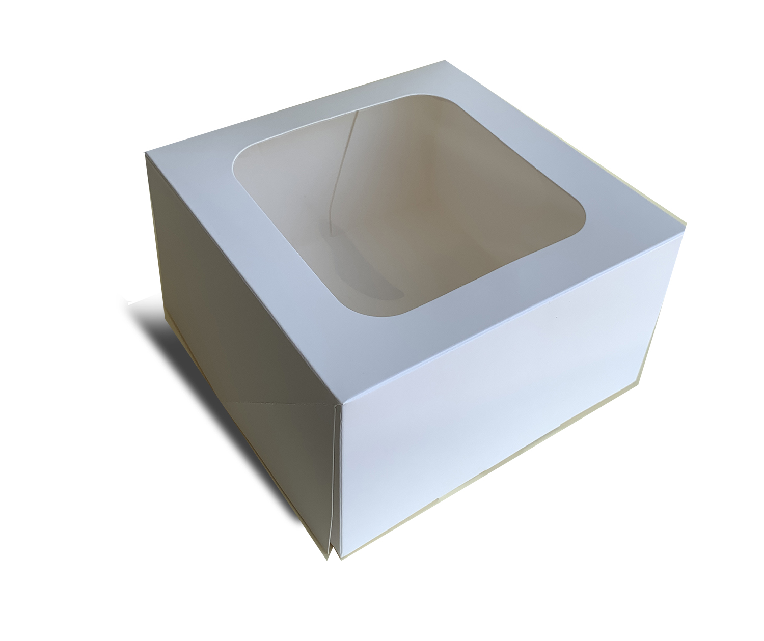 Sütisdoboz, 18 x 18 x 10 cm, fehér karton, ablakos kivitel.