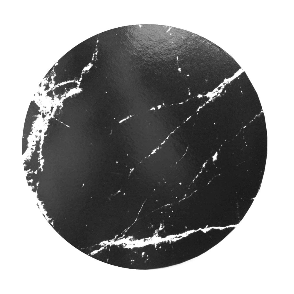 Tortadob, kerek, 254 mm, 5 mm masonite, fekete márvány mintás. A Masonite egyfajra falemez, melyet gőzfőzőtt és nyomás alatt öntött farostból készítenek William H. Mason által szabadalmaztatott eljárás során. A lap rendkívül erős, nem törik és nem vetemedik, a bevonat pedig élelmiszerbarát fólia.