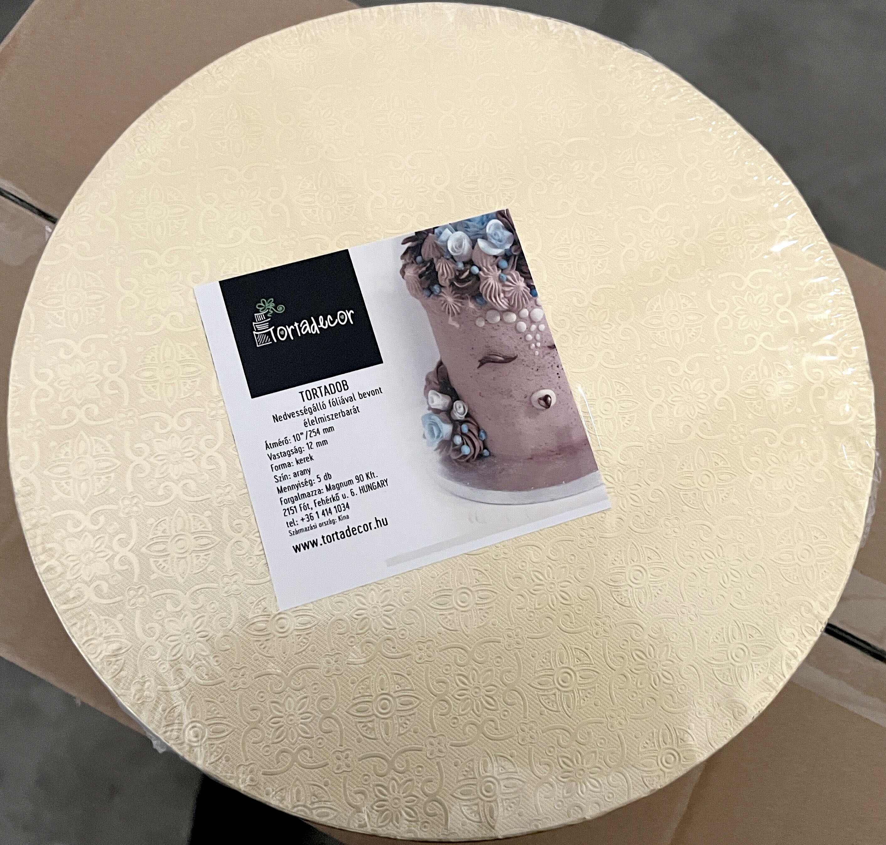 Tortadob, kerek, 305 mm, 12 mm vastag, arany fóliás.