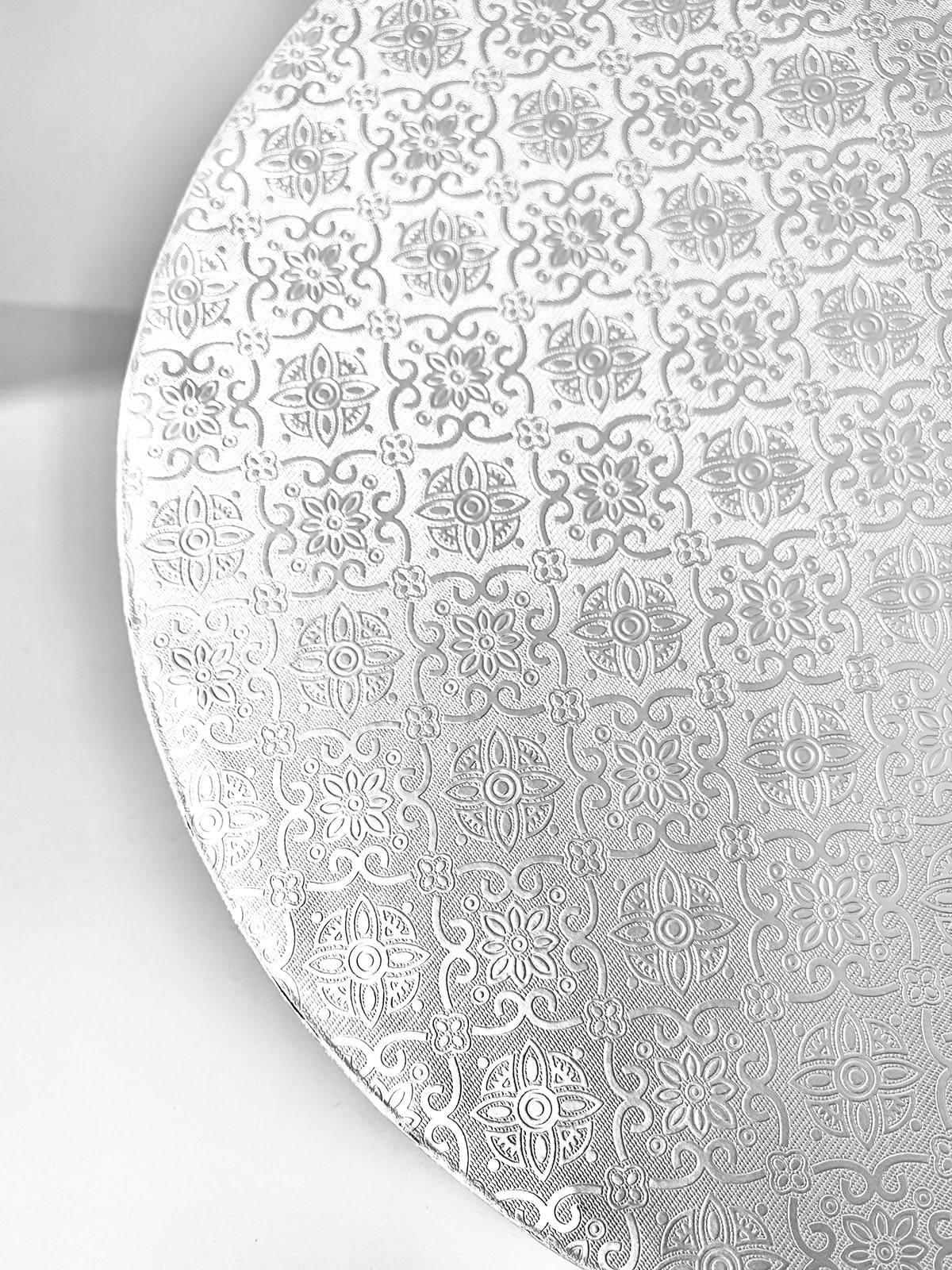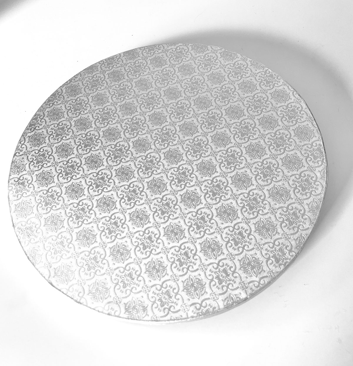 Tortadob, kerek, 406 mm, 12 mm vastag, ezüst. Élelmiszerbarát fóliával bevont részére
