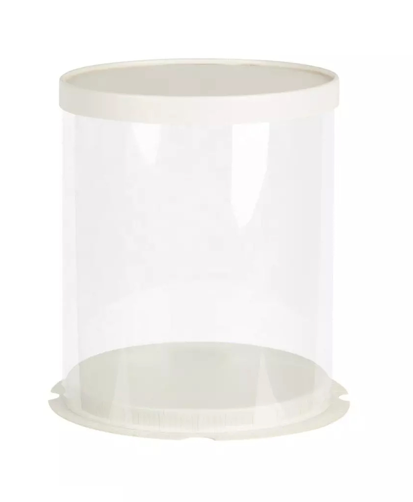 Tortadoboz, kerek, átlátszó, fehér 26x26x31 cm, 5db/csom@1.725Ft/db